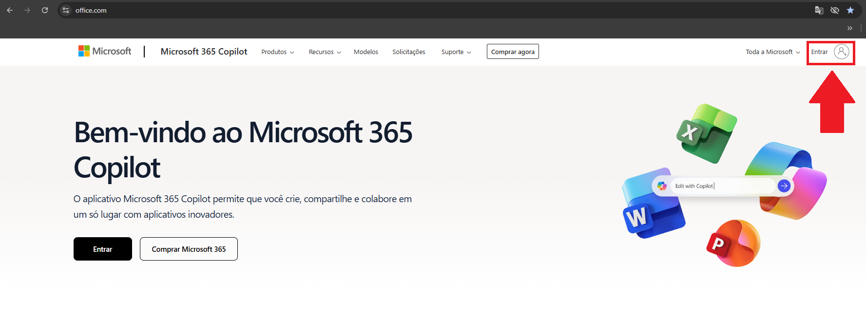 1. Acesse o office.com ou login.microsoftonline.com.